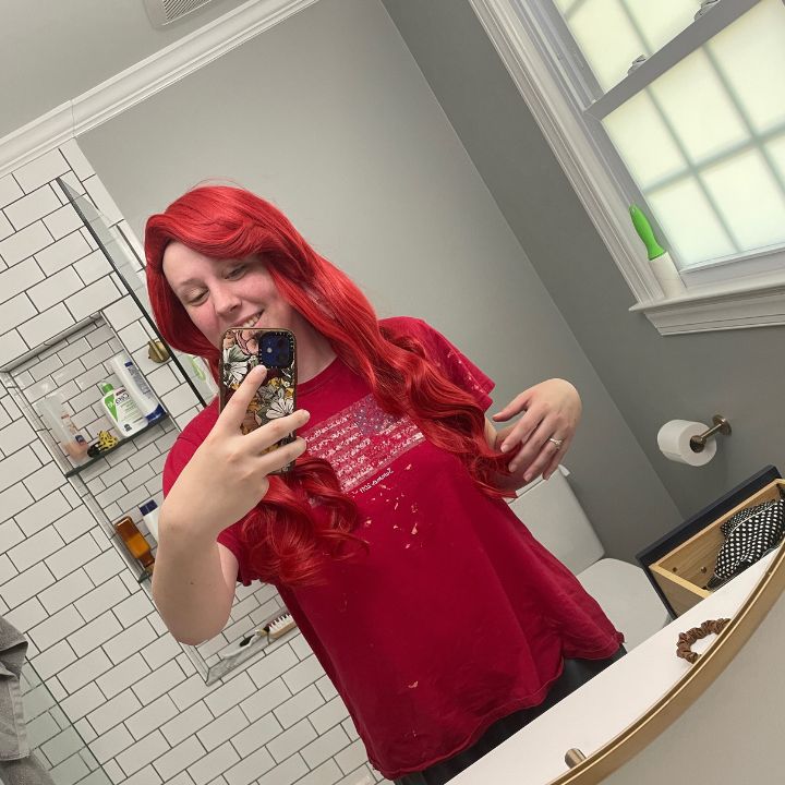 As a personal cosplay project, I created a full Little Mermaid costume for myself, featuring a very specific look from the cartoon. I fully constructed each piece of the costume, that included a skirt, tunic and bodice style corset. I also styled an inexpensive wig I found online and made a large bow with leftover fabric to complete the look.